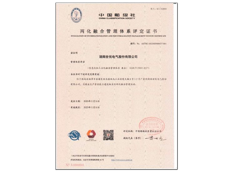 • 兩化融合管理體系評定證書