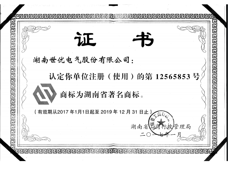 • 省級著名商標(biāo)證書
